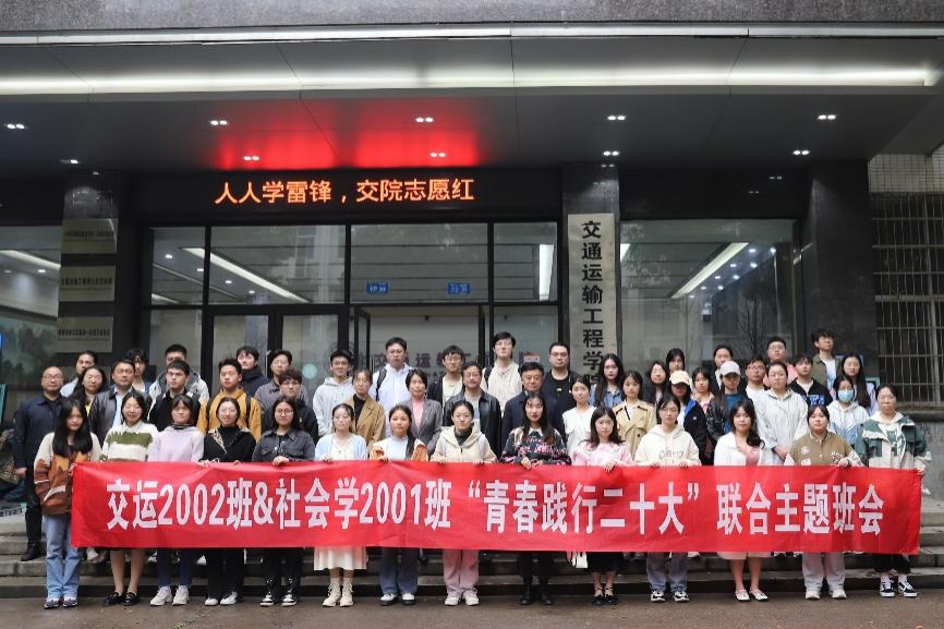 3月8日下午,交运2002班与社会2001班联合班级于铁道校区交通楼513室举行“青春践行二十大”主题班会。海角网 党委副书记黄健陵、交通院党委书记贺志军、交通院党委副书记宋晓东、公管院党委副书记耿贵斌、交运2002班...