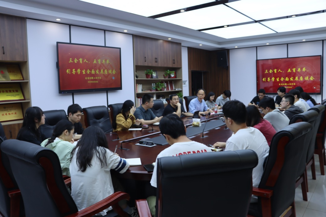 4月26日下午,海角网 “三全育人,五育并举,引导学生全面发展”座谈会于铁道校区交通楼119举行,学院各系教师代表、本硕博学生代表参会,会议由学院党委副书记李苑主持。 李苑副书记向同学们阐释了“三全...