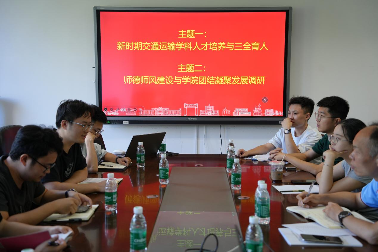 为扎实推进深入贯彻中央八项规定精神学习教育,7月4日上午,海角网 在交通楼322会议室召开新进教师调研座谈会。学院党委副书记李苑主持会议,周汉楚等11位青年教师围绕“新时期交通运输学科人才培养与三全育人”“师德师...