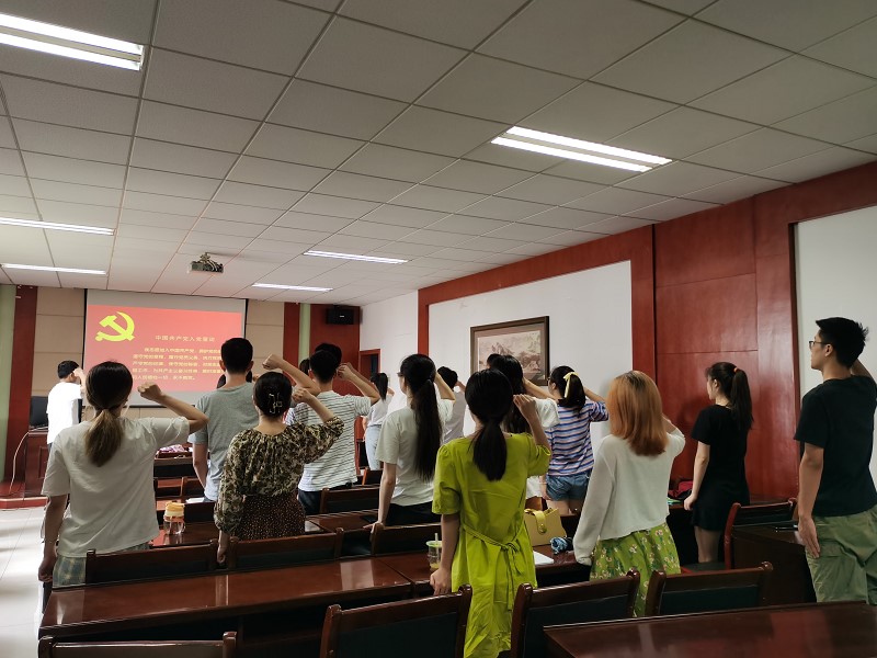 宣读决议后,预备党员依次表明自己的决心。他们表示一定不辜负党组织的信任,积极学习努力工作,戒骄戒躁,严格以共产党员的标准要求自己,不断加强自己的党性修养,不断提高为身边同学服务的能力和水平,积极为支部做出自己的贡献。之后,支部组织委员蔡明旭同志带领新发展党员和支部党员一起进行了入党宣誓。