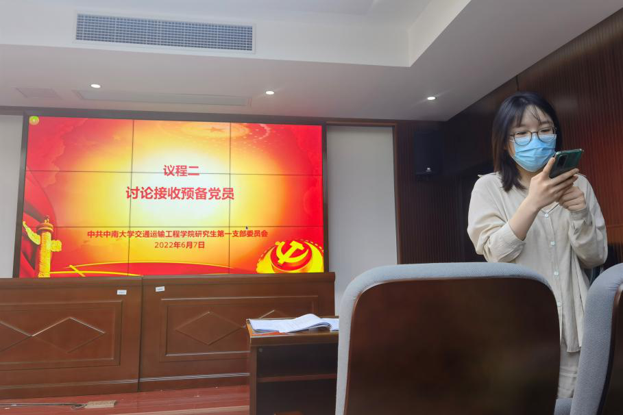 6月7日上午10:00,海角网 研究生第一党支部接收预备党员大会在交通楼425顺利举行。会议由支部组织委员战映辰同志主持。