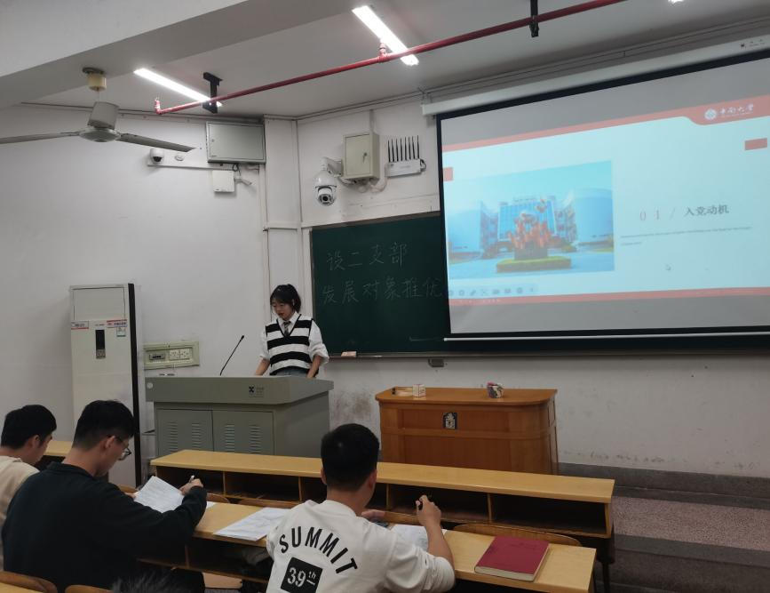 在每位发展对象候选人汇报结束后,支部党员同志结合候选人汇报内容和班级群众座谈意见,针对党的基本理论、候选人个人情况及入党动机等方面对候选人进行提问,并对汇报中存在的不足提出了中肯的建议。支部党员同志鼓励各候选人不断坚定入党决心,向身边优秀的同学看齐,改正自身不足之处,以一名合格党员的标准严格要求自己,从而更好地在思想上和行动上向党组织靠拢。在此过程中,候选人认真听取了支部党员同志的建议,反思了在学习生活中存在的不足,明确了今后提升思想觉悟、继续接受党组织考验的努力方向。