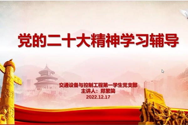 12月7日下午15:00,交通设备与控制工程第一学生党支部线上开展了十二月党日活动,就党的历次全国代表大会及二十大精神展开研讨。