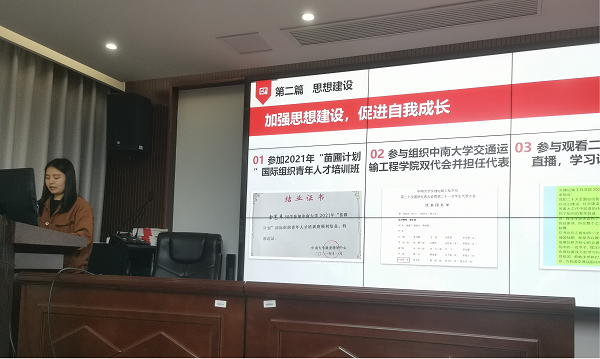 会议伊始,支部书记刘家忱同志对本次答辩会的流程进行了简单介绍。随后,5位发展对象候选人依次上台讲述了自己的入党动机、思想建设、学习海角网 和志愿服务等方面的情况,汇报了成为积极分子以来自己在学习、工作、思想、生活等多方面的表现。在每位候选人陈述完毕后,各评选委员会成员有针对性地对候选人进行提问,主要聚焦入党动机、时事政治等相关问题。答辩同学有条不紊地阐释了自己的观点,展现了良好的综合素质。评选委员会对各发展对象候选人近期为答辩所做的工作表示了充分肯定,认为各位同志在思想上、行动上都能努力实践向党组织靠拢、践行党的宗旨,但仍还存在着一定的进步空间。评选委员会表示,无论本次发展成功与否,希望各位候选人都能够时刻坚定自己的入党动机,在思想上承认党的纲领和章程,并在行动上努力实践,继续加强自身建设。