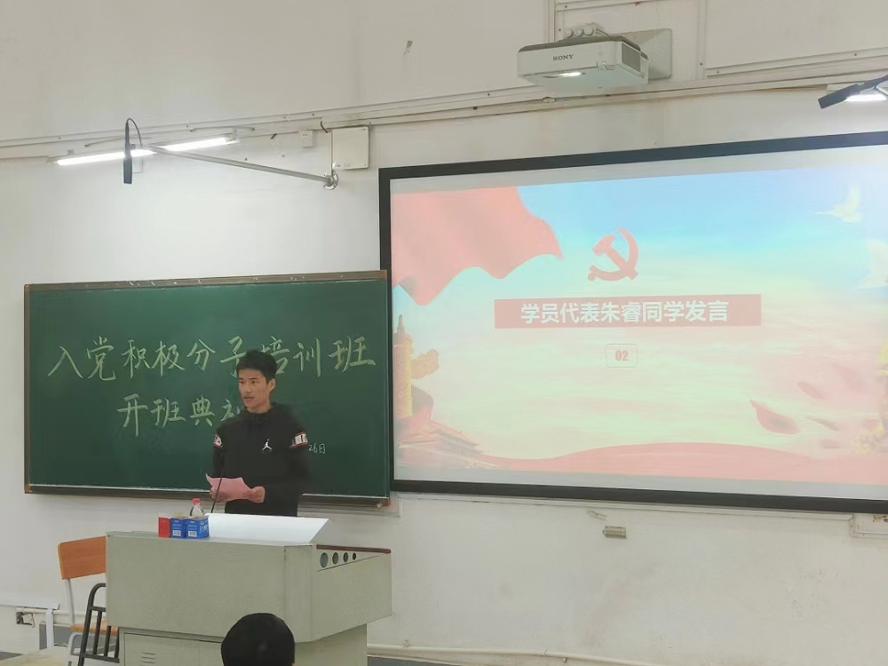 开班典礼第二项,本期培训班学员代表朱睿同学发言。他代表全体学员感谢党组织给大家提供这样一次系统学习党史理论的机会,带领同学们一同回顾了党的伟大奋斗历程,鼓励同学们一起学习先进共产党员的道德品质与理想信念,从而担当时代责任,为党和国家作出贡献。最后,他代表全体学员向党组织作出保证,期许所有同志在本次培训中能够有所收获。