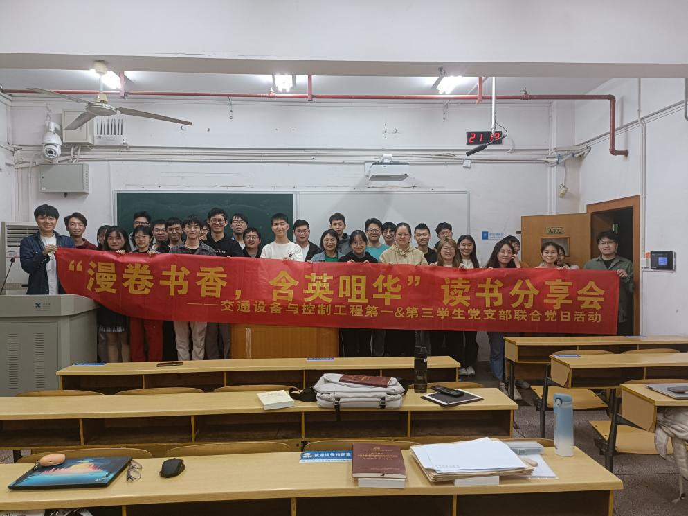 4月26日晚19:00,为丰富党支部成员课余精神生活,促进党支部文化建设,学院交通设备与控制工程第一学生党支部联合交通设备与控制工程第三学生党支部在世纪楼A302开展了主题为“漫卷书香,含英咀华”的读书分享会,由八个小组派出代表同学来分享本组的读书心得和从中感悟。