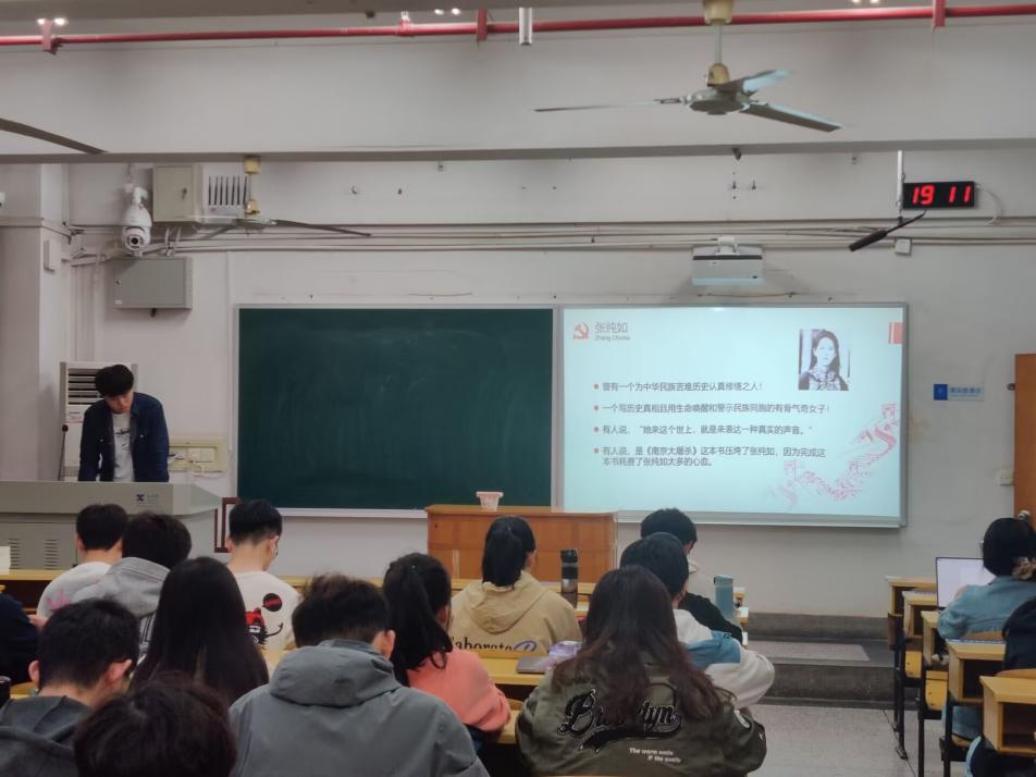 本次读书分享会中一共分享了八本书。其中,黎瑞和傅卿云同学向同学们介绍了阅读《南京大屠杀》的感悟和心得,黎瑞介绍到:“作者从三个方面解读了南京大屠杀的真相。一是听取了当年亲历事件的日本人的证言;二是记录作为大屠杀受害者和幸存者的中国人的回忆;三是挖掘出当时置身‘国际安全区’的外国人的记录。”随后,付卿云同学提到张纯如最喜欢的座右铭是“忘记历史的人将重蹈历史覆辙”,只有吸取历史教训,才能有未来的和平。