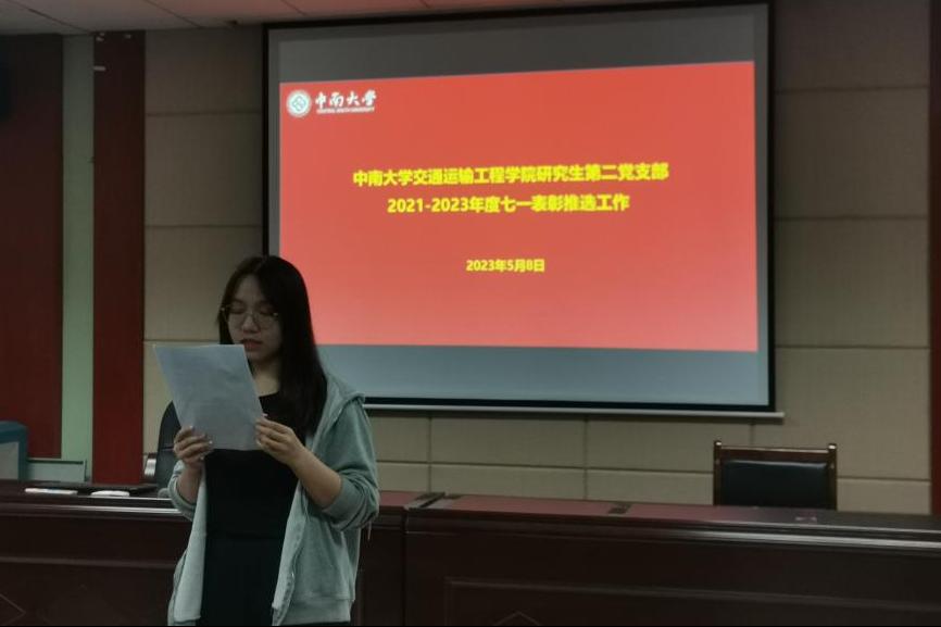 随后,支部进行2021-2023年度七一表彰的推选工作。支部书记曾捷同志先向大家宣读学院党委关于2021-2023年度“优秀共产党员”的评选标准,组织委员蒋艾佳紧跟其后宣读参评党员的基本信息及先进事迹。在听完优秀党员的介绍后,全体参会正式党员进行无记名投票,推选出2名正式党员参评2021-2023年度“优秀共产党员”。
