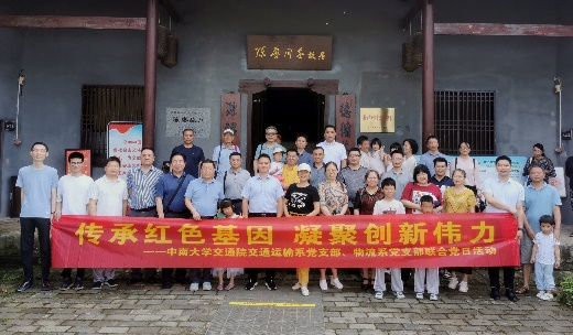 6月11日,为进一步加强党员队伍建设、增进支部活力,深入学习贯彻习近平新时代中国特色社会主义思想,全面学习贯彻党的二十大精神,巩固深化“不忘初心、牢记使命”主题教育和党史学习教育成果,扎实开展好学习贯彻习近平新时代中国特色社会主义思想主题教育,交通运输系党支部联合物流系党支部组织了一场“传承红色基因,凝聚创新伟力”的主题党日活动。教师党员一同前往位于湘潭市湘乡市龙洞乡泉湖村杨吉湾的陈赓大将故居,开展主题教育研学活动。