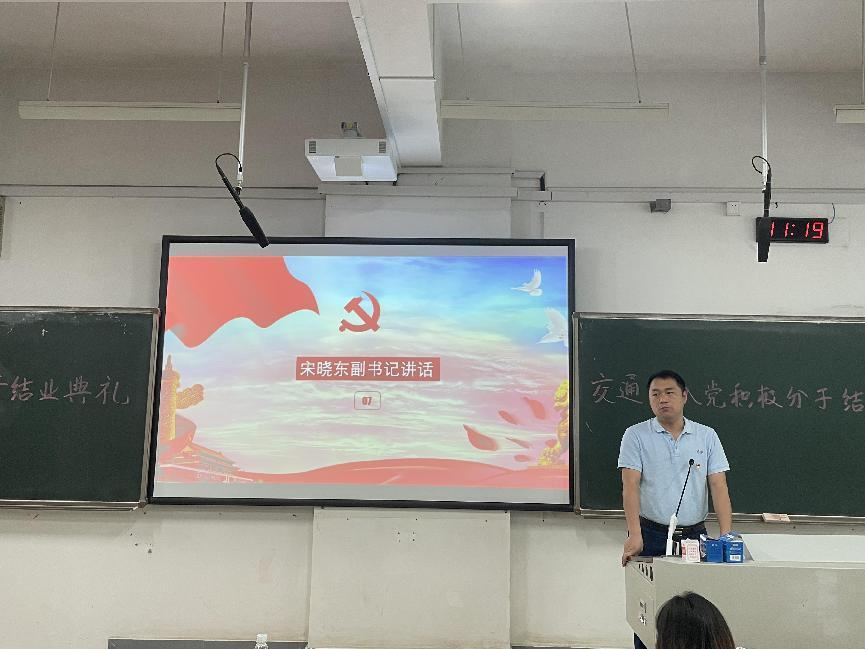 典礼第五项,宋晓东副书记讲话。宋书记首先对顺利结业的学员们表示祝贺。同时,他就“提高政治觉悟,坚持理论学习”、“理论联系实际,在生活中践行党的理论”与“提升全面素质,全方面成长”三个方面对学员提出要求与希冀,希望学员们敢为人先,争做表率。最后,宋书记由衷希望学员们能够明确入党动机,提高自身政治觉悟,早日加入党组织。