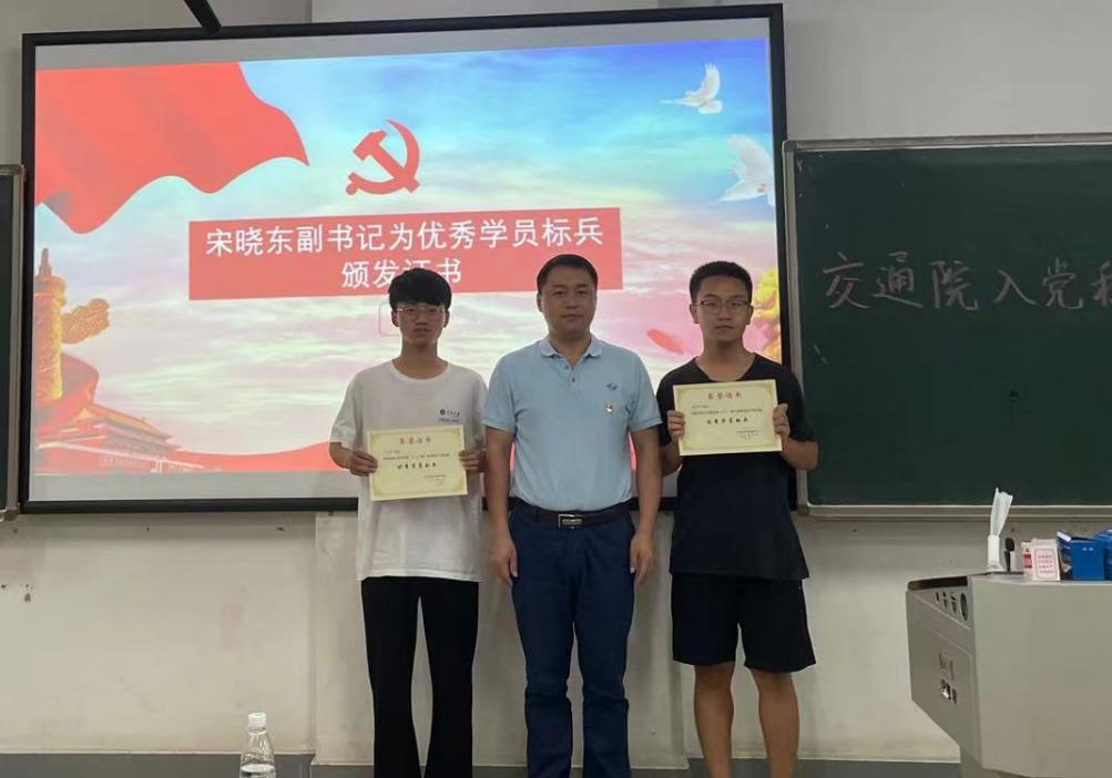 典礼第二项,张佳琪老师宣读表彰决定,评选肖浯桐、刘子森两名同学为本期培训班优秀学员标兵,胡钰瑶等16名同学为本期培训班优秀学员。宋晓东副书记为优秀学员标兵颁发证书并合影留念,张佳琪老师为优秀学员颁发证书并合影留念。