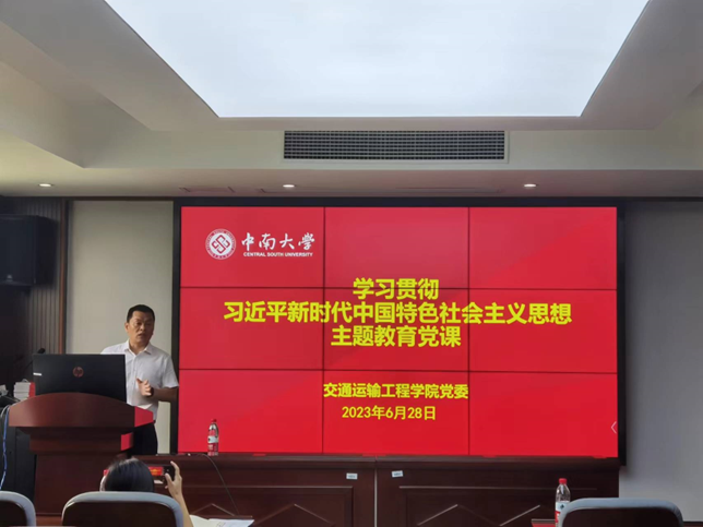 6月28日15:00,学院党委委员、副院长陈维亚在交通楼425教室讲授了主题为“学习贯彻习近平新时代中国特色社会主义思想主题教育”的专题党课,支部全体党员同志到场学习。