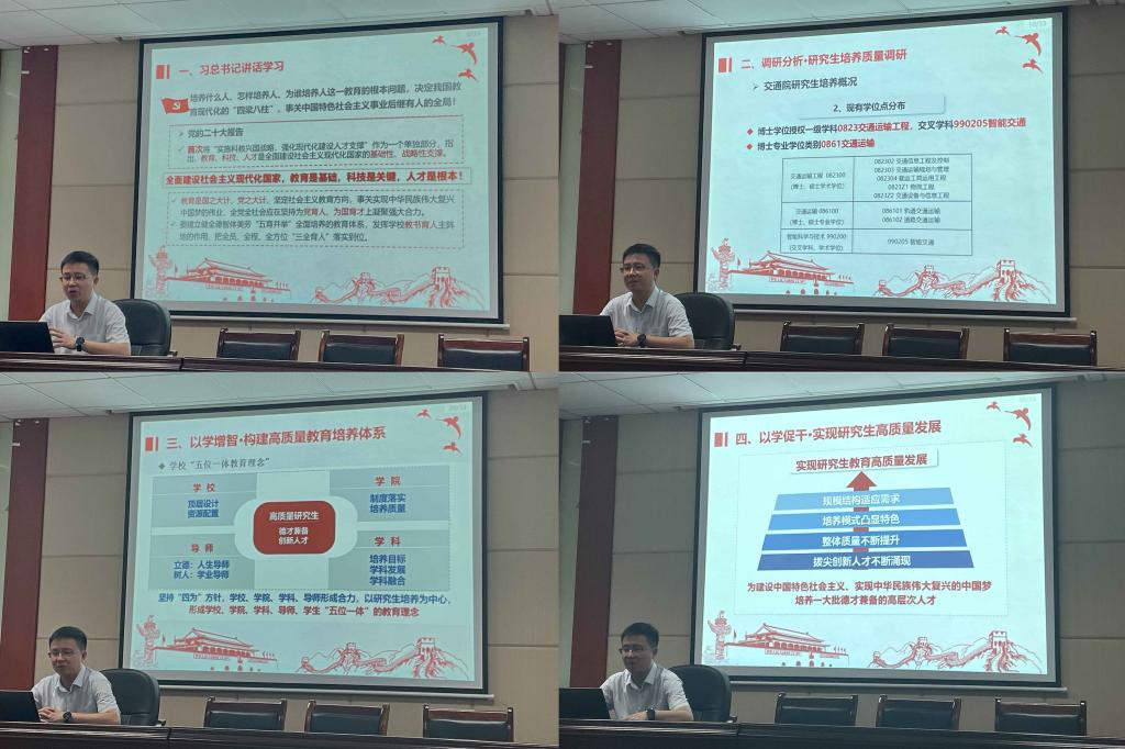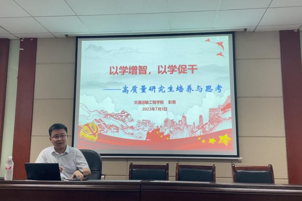 7月3日上午9:30,博士研究生第三党支部与研究生第四党支部在交通楼513开展了专题党课学习。本次党课由学院副院长彭勇老师讲授,主题为“以学增智,以学促干——高质量研究生培养与思考”,支部全体党员同志参与学习。