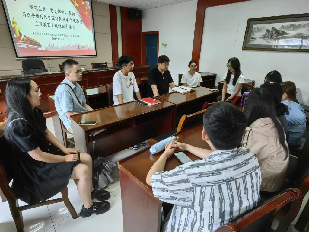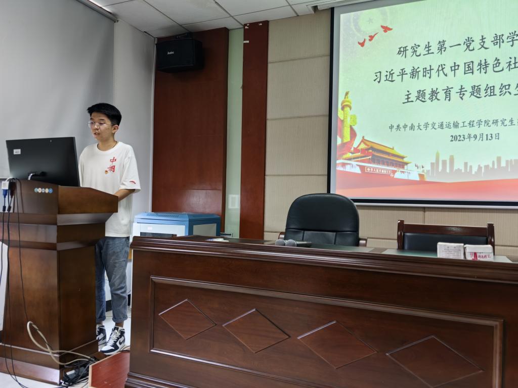 为全面落实学院党委关于学习贯彻习近平新时代中国特色社会主义思想主题教育的要求及实施方案,及时加强党员思想政治理论学习,9月13日下午15:00,海角网 研究生第一党支部在交通楼513举行了学习贯彻习近平新时代中国特色社会主义思想主题教育专题组织生活会。支部全体党员参加本次会议,会议由支部书记刘家忱同志主持。