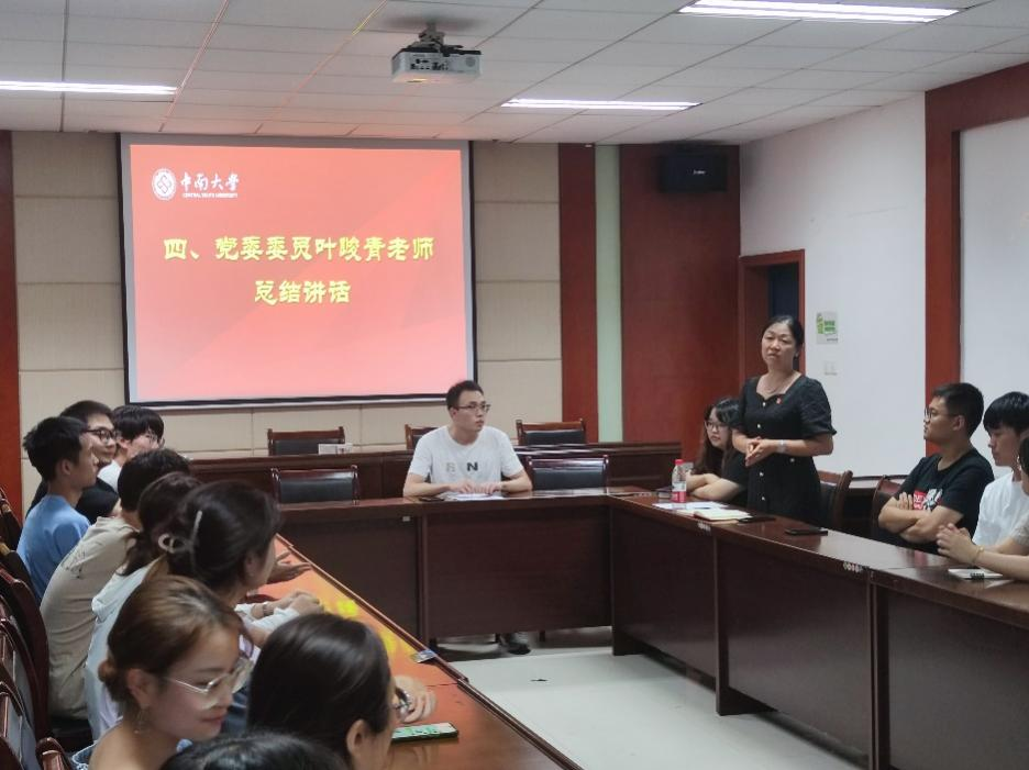 叶老师在总结发言中给出三个建议。一是要持续深化对习近平新时代中国特色社会主义思想的学习领悟,做好思想内化;二是抓好党风党纪,会前通报到会情况,严格落实请假制度;三是打造支部特色活动,做到思想与实践相结合。