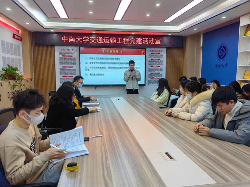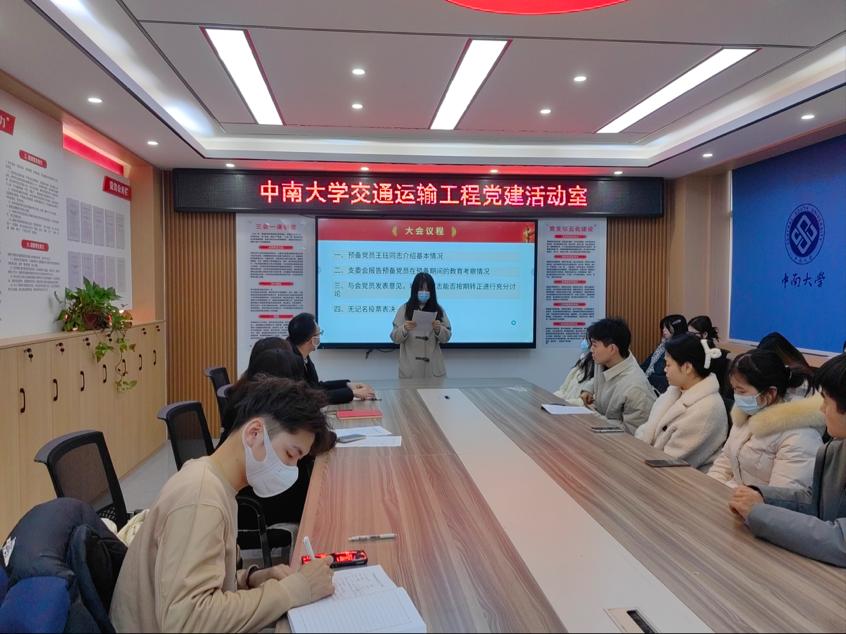 12月15日,研究生第六党支部在第一综合教学楼530室举行预备党员转正大会,讨论接收王珏同志及张湘鹏同志的转正事宜,会议由支部书记周少宇主持。