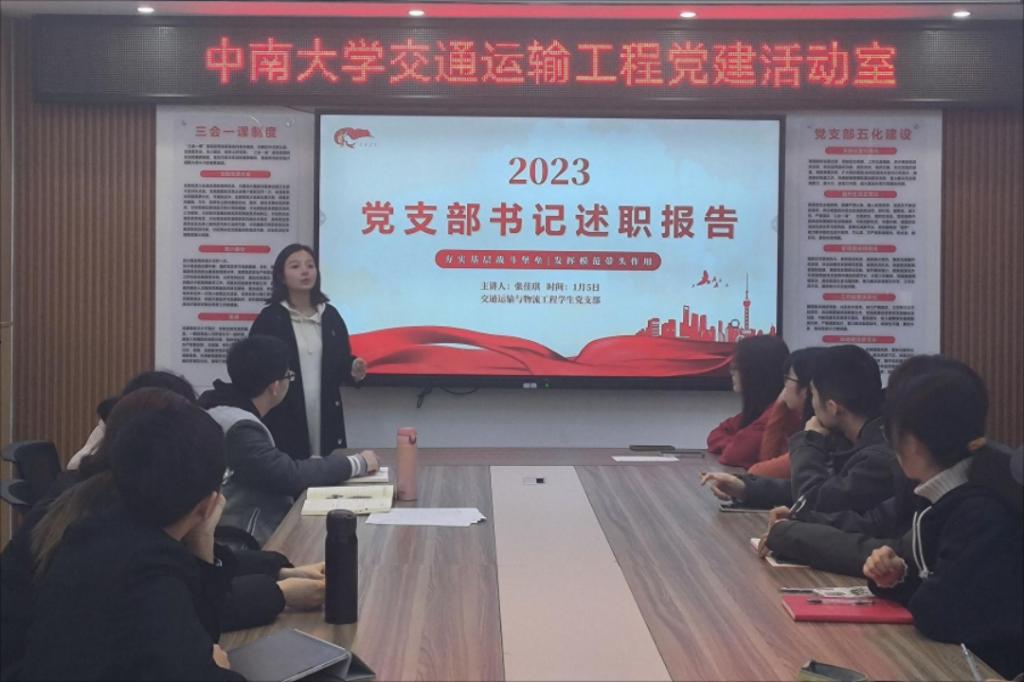 1月5日下午,交通运输与物流工程学生党支部于交通院党建活动室举行了党课集中学习及民主评议党员大会,会议包括三大部分:讲党课、支部书记述职和民主评议党员。支部全体党员同志及群众代表参会。