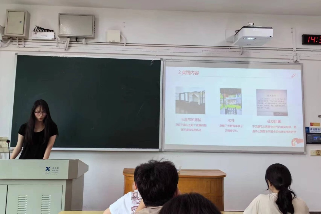 各小组代表对本组的研讨和社会实践活动内容进行了汇报展示。各小组分别前往新民学会旧址、烈士公园、中共委员会湘区旧址、岳麓山和杂交水稻研究中心等地进行参观学习,沉浸式感受党史峥嵘岁月,感悟革命先辈精神。在学习研讨中,各小组自定主题,围绕党的二十大精神、党纪学习教育等内容进行深入交流,将理论与实践相结合,以学促行,以行践学,进一步坚定自身理想信念并加强党性修养。