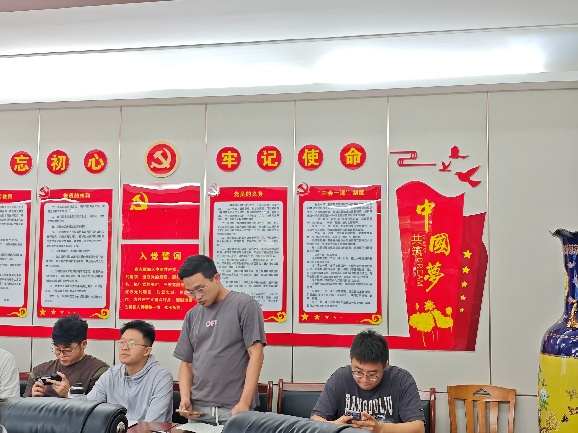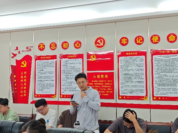 首先是王鑫同志,他讲了自己在如何选择去企业还是选调的顾虑与方法,同时分享了大家很多考公的经验与遗憾,希望自己的摸索能为支部未来毕业的党员同志指明一些方向。第二位是姚邵诚同志,他分享了自己在私企选择与面试的经验与教训,同时强调了一些在这个就业方向上特别需要注重的方面。接下来,丁一同志和邓敏同志都分享了自己在国企岗位面试与选择的经验,讲了自身实习的经历与在后续求职过程中的作用,并欢迎师弟师妹咨询他们关于简历的修改意见。最后一位是王祉歆同志,她分享了自己在如何选择就业与升学期间的对各方面的考量和自己在升学方向的一些经验与技巧。