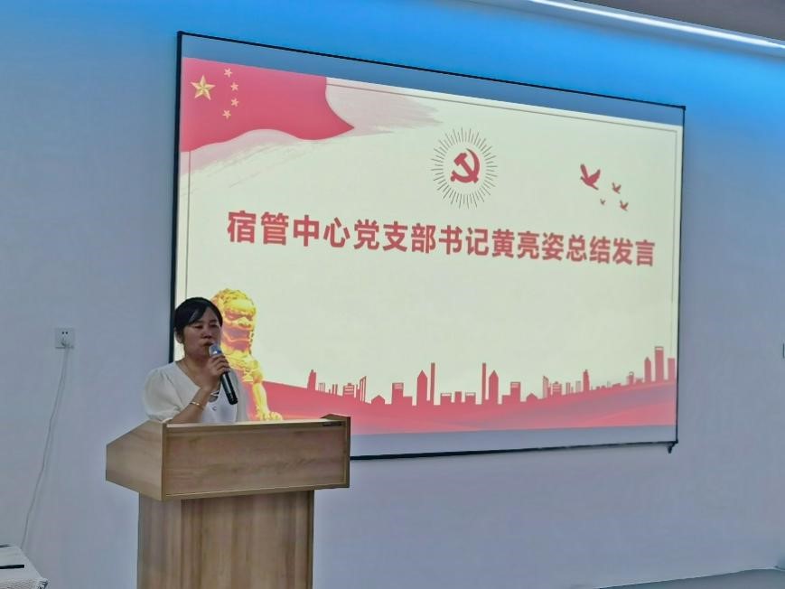 最后,由宿管中心党支部黄亮姿书记做总结发言。黄书记首先对交通院党委及交设二支部的支持与配合表达了感谢。她表示,此次活动内容丰富,同志们不仅共同了解了我国轨道交通的发展,也开展了党纪学习教育,增强了党员们的党性修养和纪律意识,也进一步促进了各支部之间的团结与合作。她希望支部间的联合活动能够在今后继续开展,不断推动党支部建设迈上新台阶。最后,黄书记还就学校后勤工作向同志们征询了建议。