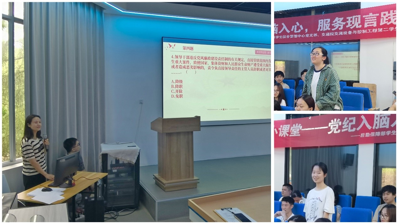 交通设备与控制工程第二学生党支部联合后勤保障部学生宿舍管理中心党支部举行“党纪入脑入心,服务现言践行”实践活动