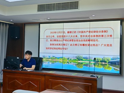 随后,郑繁简同志讲授“学好用好《条例》,守住守牢初心”主题党课。从本次修订的意义、修订的重点内容、学好用好《条例》三个方面对于新修订《条例》的学习进行了阐释。