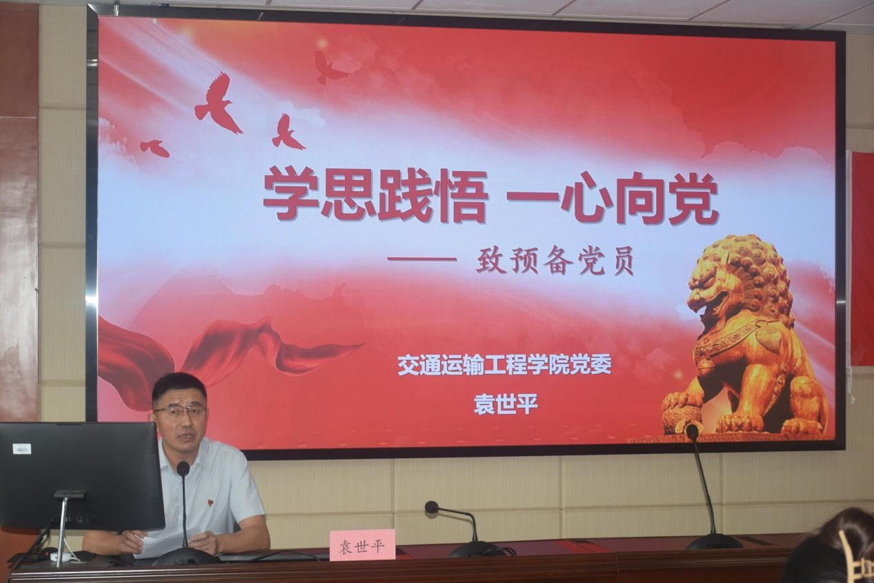 学院党委书记袁世平同志以“学思践悟,一心向党”为主题,给全体预备党员讲授党课。袁世平同志从学习习近平新时代中国特色社会主义思想、全面了解党的组织生活、参与党内组织活动、接受党组织的考验四个方面展开,向刚加入党组织的党员同志们表达了殷切期望。他表示,身为新时代青年和学生党员,应不断增强“四个意识”、坚定“四个自信”、做到“两个维护”,积极参加“三会一课”,认真开展批评和自我批评,深刻理解党的优良传统和作风;认真履行党员义务,进一步理解党的基本知识,积极完成党组织的任务,以实际行动践行入党誓词,做到学习和实践相统一,将所学为所用。平时看得出来,关键时刻豁得出去,将个人与国家的发展紧密结合起来,早日实现中华民族伟大复兴的中国梦。