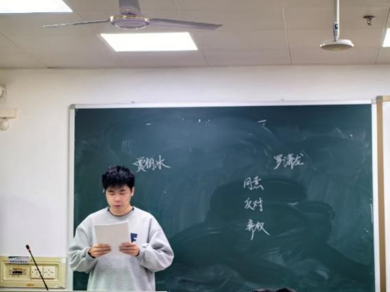 会议第四项,支部大会采用无记名投票的方式对两名同志的接收问题进行表决。根据投票结果与支部大会讨论决定,同意接收贾柏冰、罗潇龙两名同志为中共预备党员。最后,支部书记李涵同志带领在场党员同志重温入党誓词,并向新接收的两位预备党员表示祝贺。李涵同志勉励新发展的两位同志,要戒骄戒躁、全面发展,结合自己的专业学习,严于律己,练就过硬本领,不断发展自我、完善自我。