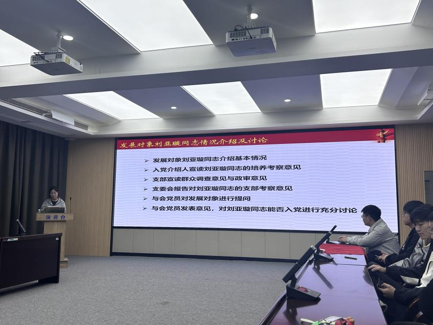 在刘亚璇同志预备党员接收审议中,会议严格遵循党员发展程序,首先宣读了党委预审意见。刘亚璇同志详细介绍了个人基本情况、入党动机及思想工作表现,入党介绍人宣读培养考察意见,支部公开了群众考察意见与政审结果,支委会报告了考察情况并提出接收建议。与会党员围绕刘亚璇同志的政治素养、专业能力、群众基础等方面展开充分讨论,经无记名投票表决,大会一致同意接收刘亚璇同志为中共预备党员。