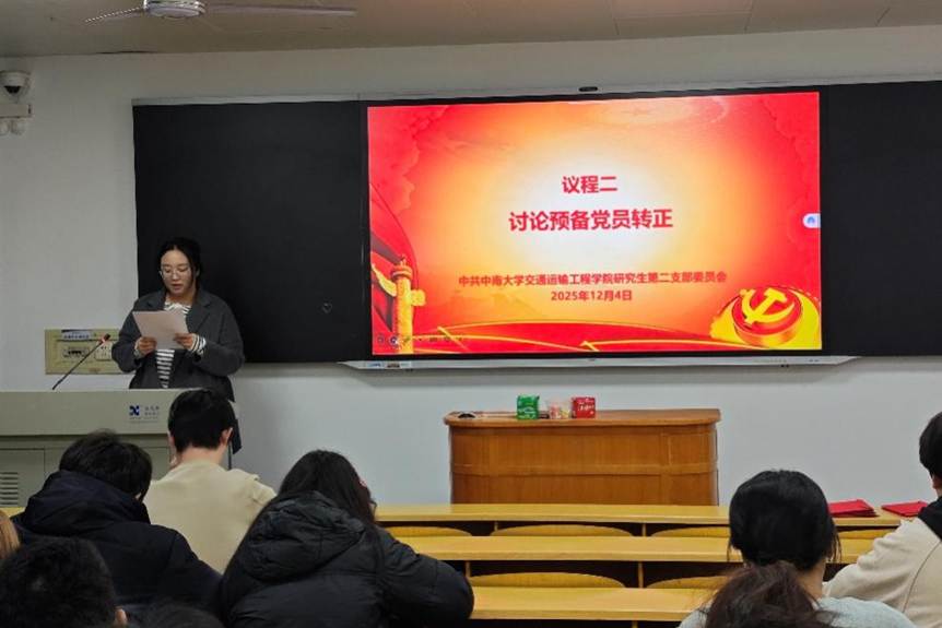 12月4日19:00,研究生第二党支部于世纪楼A103教室举行预备党员接收大会暨集体政治生日会。本次会议由支部书记胡奕同志主持,支部全体党员参加会议。本次会议旨在进一步加强支部党员队伍建设,强化党员党性修养与身份意识,为支部注入新活力,凝聚奋进力量。