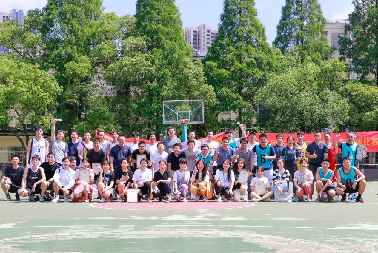 、授业解惑的老师们化身队友与学生并肩作战在赛场上纵横驰骋。娴熟的技术与默契的配合演绎出一次次精彩的瞬间,赢得现场阵阵欢呼。历时一周,随着一场场比赛的推进,篮球比赛在大家意犹未尽的欢呼中落下帷幕,高门战队、铁道游击队、激流勇进队分别获得冠亚季军。定点投篮比赛中,李佳豪、李韬分别获男女子组冠军。比赛结束,全体参赛人员、工作人员合影留念。