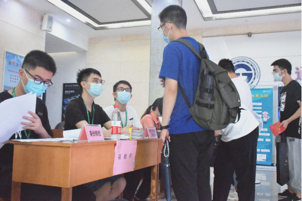 早上七点半,迎新工作人员便已就位。伴随着缕缕阳光照进交通楼,充满阳光朝气的新生们也陆续到来。九月的长沙高温依旧,报到点处已提前备好饮用水、电风扇等物资,新同学们因而多了一份清爽和舒心。在迎新工作人员的引导和帮助下,新生们依次完成身份核验、办理婚育状况证明、转工资关系、转党/团组织关系等步骤。