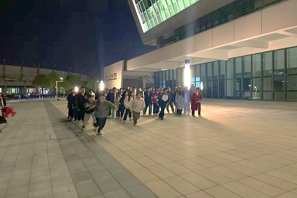 本次活动不仅有流光溢彩的荧光夜跑,还融入了趣味十足的“手拉手穿呼啦圈”游戏。各班同学手拉手一字排开,共同完成呼啦圈的接力。呼啦圈先是通过双腿,然后越过下一个同学的头部,轻轻一抖,呼啦圈依次传递下去,最终落地的那一刻,成就感涌上同学们的心头。
