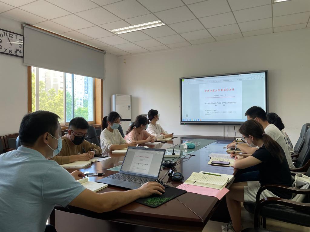 2022年共青团工作要点》。2022年学生工作的总体要求是以习近平新时代中国特色社会主义思想为指导,深入学习贯彻党的十九大和十九届历次全会精神,认真贯彻落实习近平总书记关于教育的重要论述和来校视察时的重要指示精神,大力推进时代新人培育工程,全面落实学校第四次党代会精神,努力推动学生思政工作高质量发展,以实际行动迎接党的二十大胜利召开。宋晓东书记强调,文件中对于学生工作各方面都提出了新的要求,确定了本年度的工作方向,各位老师要仔细研读,领悟精神,并且根据工作实践找准下阶段工作的切入点,严抓落实,奋勇争先。
