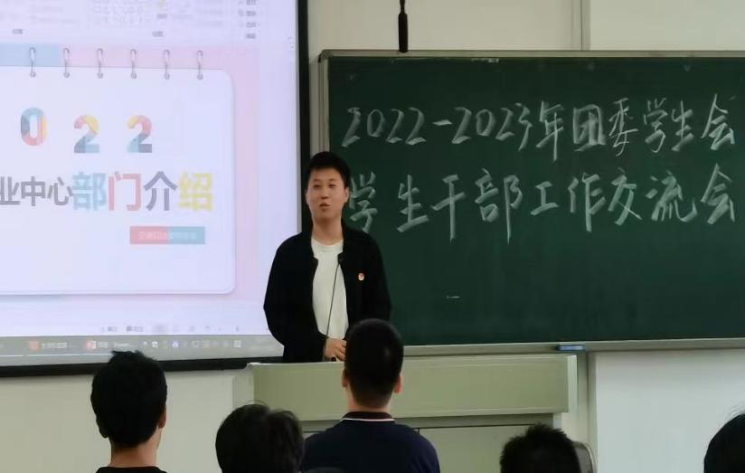 于2022年11月9日下午三点整在新校区A座314召开2022-2023年团委学生会学生干部工作交流会。院团委书记张健老师,团委副书记郑繁简老师,以及院团委、学生会各部门成员参加本次会议,本次会议由张舒瑶同学主持。