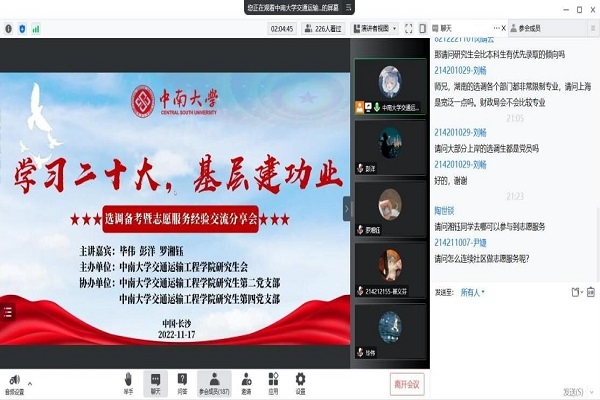 为加深同学们对选调备考的认识,正确把握选调生政策,提高冲刺阶段备考质量,11月17日晚19:30,“学习二十大,基层建功业”选调备考暨志愿服务经验交流分享会在线上顺利举行。本次活动由海角网