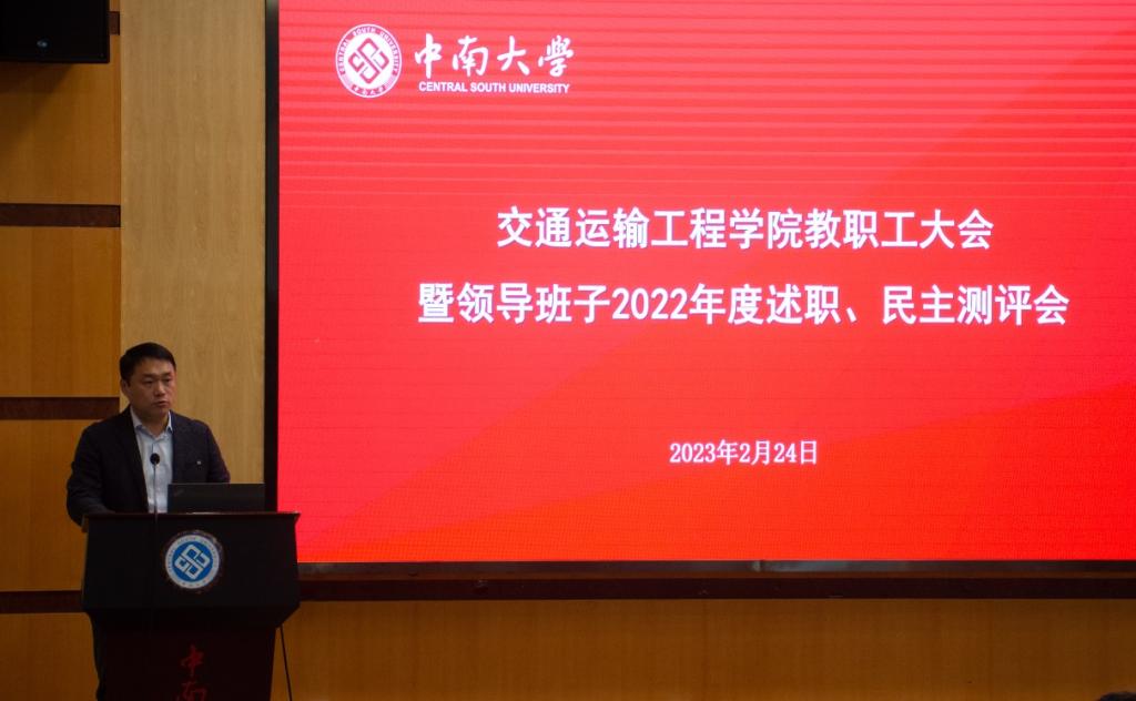 于铁道校区世纪楼C201国际报告厅召开全院教职工大会暨领导班子2022年度述职、民主测评会。学院全体教职工参加本次大会,院党委副书记宋晓东主持大会。