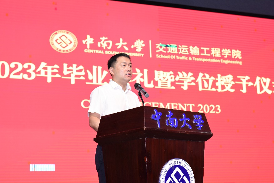 2023年毕业典礼暨学位授予仪式在铁道校区大礼堂举行。交通院全体院领导、各系所主任、导师代表、班导师代表以及2023届博士、硕士和本科毕业生参加典礼。本次典礼由交通院党委副书记宋晓东主持。