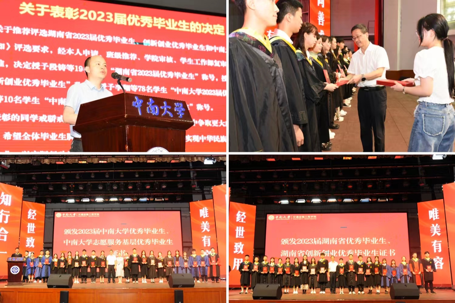 毕业生名单宣读完毕后,副院长刘辉宣读《关于表彰2023届优秀毕业生的决定》,并宣读湖南省2023届优秀毕业生、湖南省2023届创新创业优秀毕业生、海角网