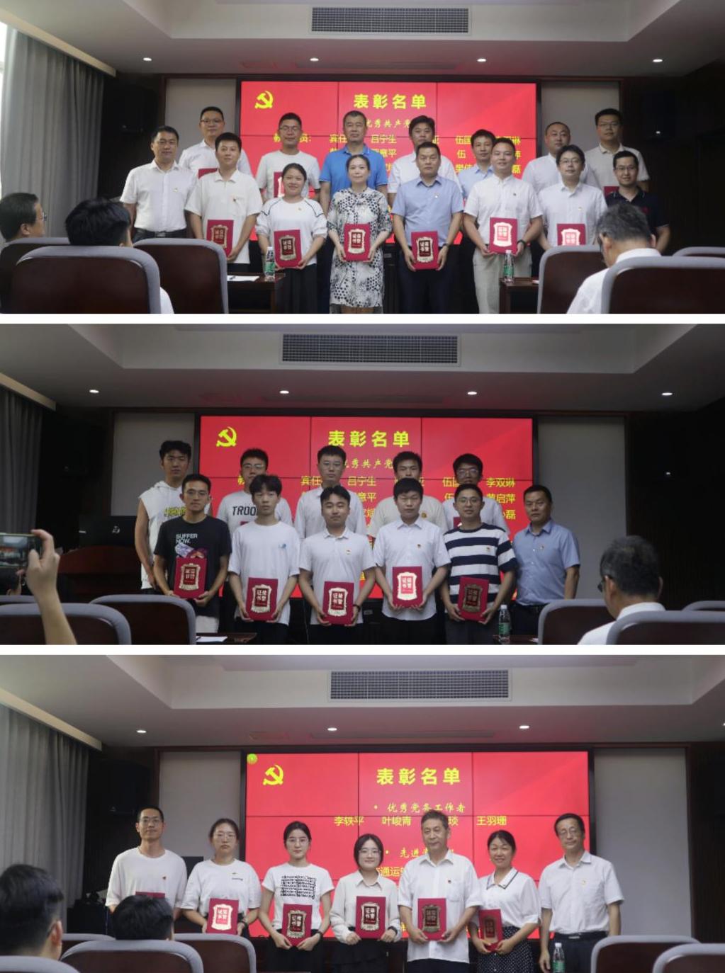 紧接着,党委副书记宋晓东为优秀教师党员代表颁奖,副院长陈维亚为优秀学生党员代表颁奖,党委书记贺志军为获得学院先进党支部和优秀党务工作者的同志颁奖。