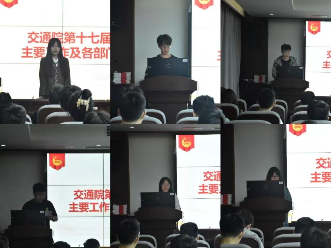 10月10日晚19:30,交通院第十七届研究生会工作交流会于铁道校区交通楼425顺利举行。学院团委书记张健、研究生会全体成员参加会议,本次会议由交通院研究生会主席马捷主持。