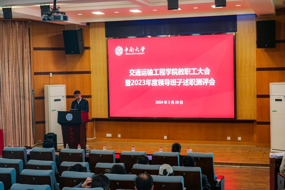 院党委书记袁世平代表学院领导班子作2023年度述职报告。他从坚持和加强党的全面领导,持续发挥政治功能;全面贯彻党的教育方针,持续加大人才培养工作力度;立足“四个面向”,持续推动学科高质量发展三个方面汇报了2023年的工作。他提到,2023年,学院党委坚持以习近平新时代中国特色社会主义思想和党的二十大精神为指导,持续推进学习贯彻习近平新时代中国特色社会主义思想主题教育,围绕创建“中南特色、全国一流的全国党建工作标杆院系”总目标,坚持党建引领、赋能增效,以高质量党建引领一流学科发展,学院全体师生踔厉奋发、笃行不怠,硕果累累。获国家本科教学成果二等奖1项、国家研究生教学成果奖二等奖1项、国家虚拟仿真一流课程1项、获批留学基金委创新型人才国际合作培养项目1项;全年海角网