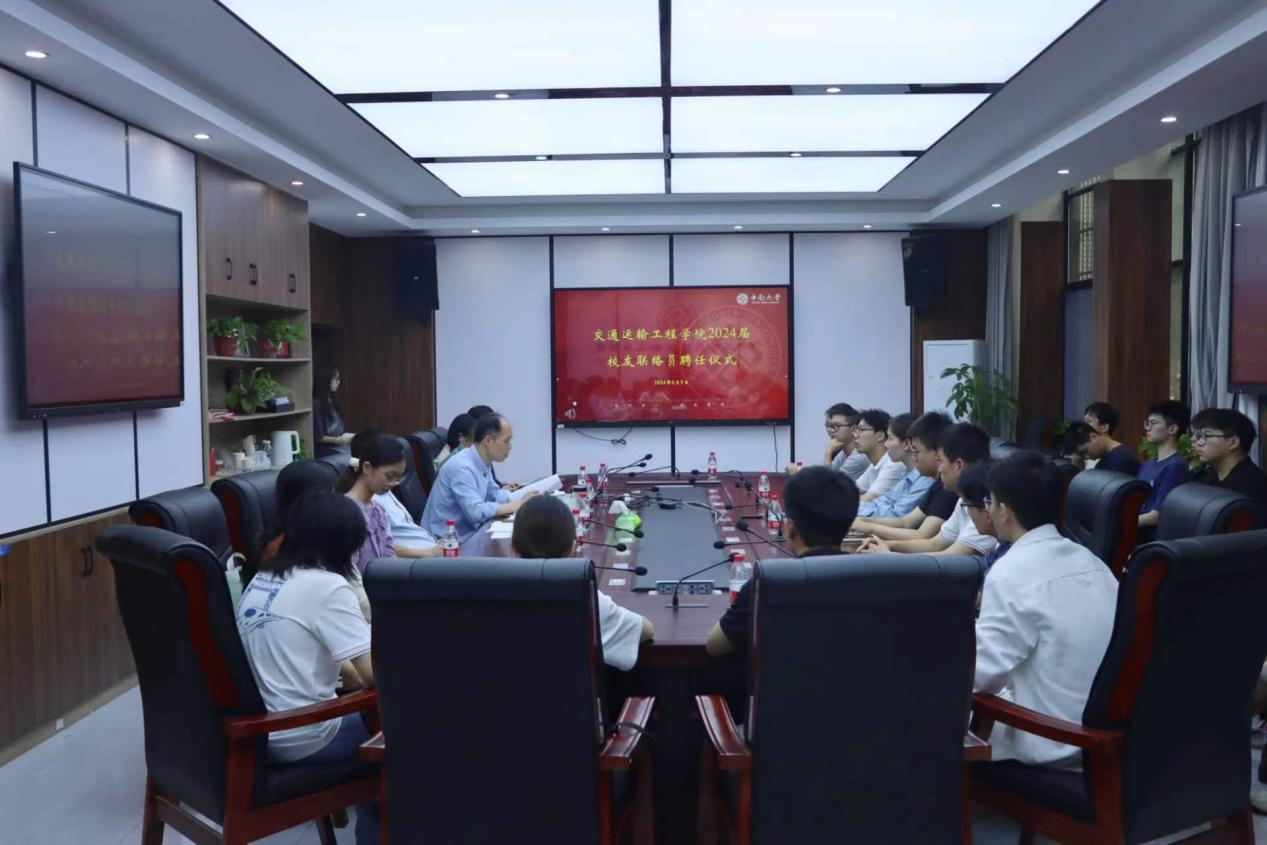 于交通楼119举行2024届校友联络员聘任仪式。学院党委书记袁世平、副书记李苑,教师代表及2024届全体校友联络员参加会议。