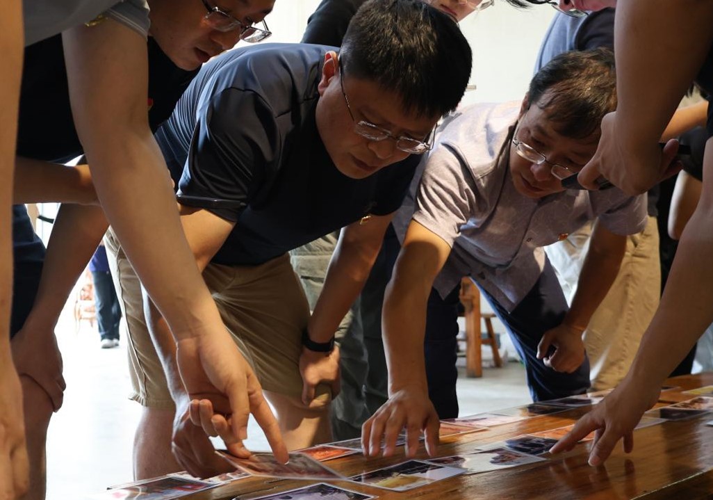 随后“党史我知道”活动将整个拓展教学推向高潮。该环节将同志们分为两组,每组需要在最快的时间内将30张党史图片按照时间顺序排序,旨在通过回溯中国共产党成立到新中国成立所走过的路,增强同志们的爱国热情。30张党史图片包含中共一大会址、瓦窑堡会议旧址、《中国土地法大纲》封面、开国大典等内容,贯穿中国共产党成立到新中国成立的历史进程,这样的游戏体验充分调动了大家的积极性,既收获到了党史知识,又锻炼了身体素质以及团队配合能力。