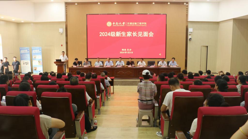 于新校区工训大楼报告厅举行2024级新生家长见面会,学院领导班子成员、各系所主任、班导师代表、辅导员,以及2024级本科生全体家长参加。