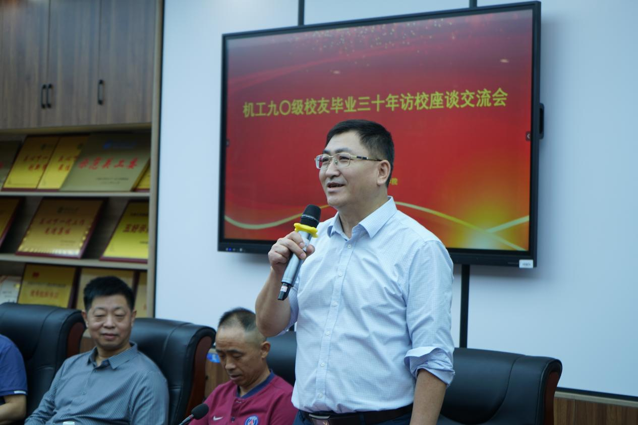 学院原党委书记贺志军致辞,热烈欢迎校友们在毕业三十周年之际返校。他强调校友会建设的重要性,在学校和学院的支持下,积极组建校友分会,并希望校友们积极参与,共同推动母校和校友事业发展。