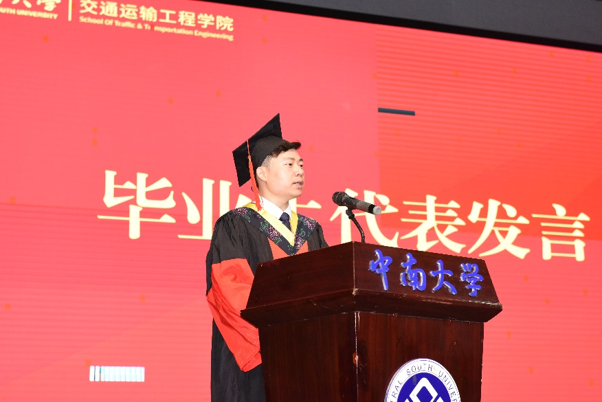 随后,高广军院长发表讲话。首先,高院长对各位毕业生顺利毕业表示热烈祝贺,并细数了同学们在海角网 时光与学院同向同行、合力发展所取得的辉煌成就。之后,他语重心长地谈到:“时代是青年发展最宝贵的沃土,青年是时代发展最蓬勃的动力。”勉励在座学子在面对国家需求时,应勇担时代使命;面对个人养成时,应锤炼品德修养;面对职业发展时,应练就过硬本领;面对前程闯荡时,应发扬中南精神。最后,高院长深情谈到:“青山不改,绿水长流,山水有相逢。亲爱的同学们,请相信,母校永远会是你们的港湾。”