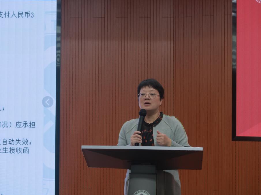 本次培训会首先由就业指导中心的聂蕙老师进行学生就业指导报告,旨在为同学们提供就业方面的集中培训,着重解答单位邀约、学生应约以及就业协议书等问题,为学生们未来的就业之路提供有力指导。
