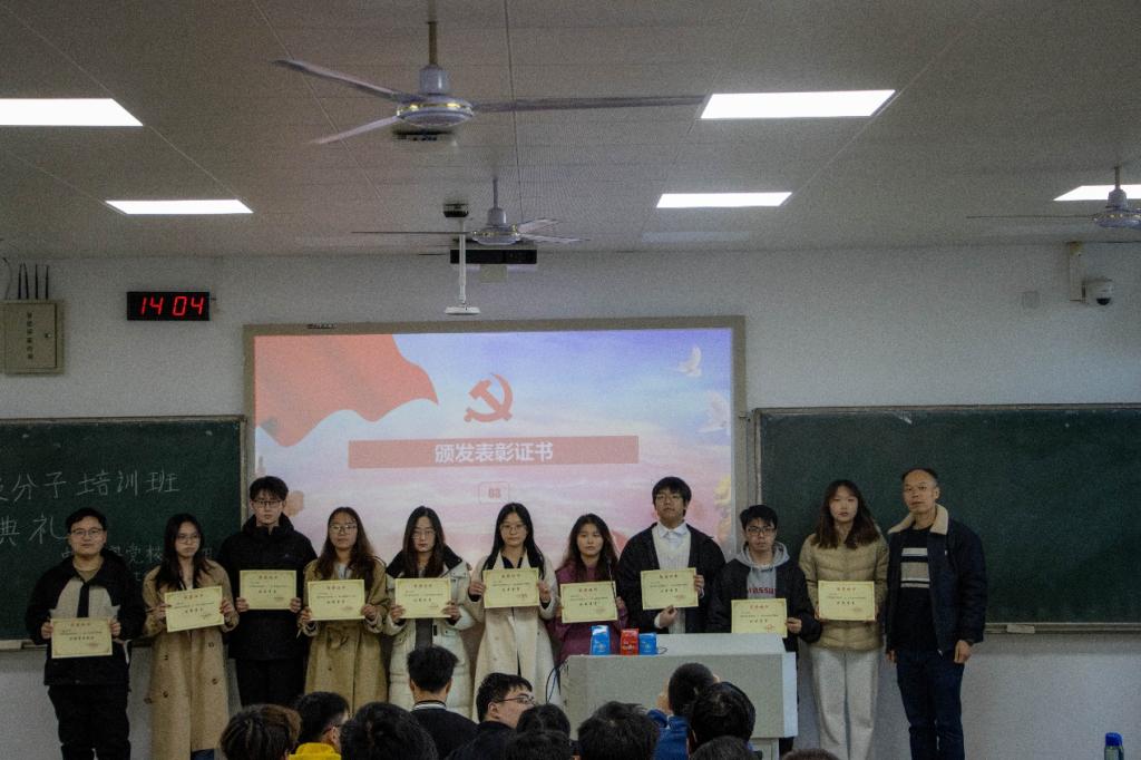 典礼第二项,官群雄老师宣读本期培训班表彰决定。经公平公正的综合评选,郭赛康被评为本期培训班优秀学员标兵,李颖珊等九位同学被评为优秀学员。随后,李苑副书记为优秀学员和优秀学员标兵颁发证书。
