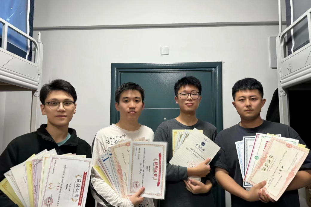 “我们会以各种形式督促鼓励彼此的学习。”陈伟波随后介绍了他们互帮互助的“小秘诀”。他们寝室每周定期举行小组学习交流会,就课程内容、海角网 进展等课题进行讨论。共同制定的学习计划和目标,互相监督和鼓励的机制,促使每个人都在规定的时间内完成学习任务。此外,四位同学在参加学术竞赛、海角网 项目、研讨会等实践中共同收获了经验与学术成长。多样的学习形式在三年中不断鼓舞着四人的干劲,他们怀着学术热情和对未来的憧憬,在不断的磨砺当中,多次收获了各类奖项,成绩斐然。